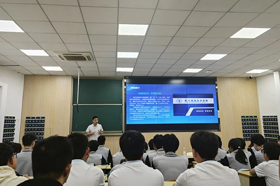 9月25日,浙江機電職業技術大學招就處處長溫長勝、現代信息技術學院院長盧滌非等領導熱情接待了參訪的浙江信息工程學校招就處副處長馬彥、信息部主任方文煒、計算機網絡23班班主任周軼偉,計算機網絡24班班主任王義凱等一行師生。盧院長為學生們開設了題為《走進浙機電:專業解讀、學院文化體驗》講座,從多方面講解了浙江機電技術大學計算機網絡技術專業課程規劃、人才培養計劃、專業就業前景、師資力量與實訓設施、就業情況以及社會實踐等情況。在交流環節,面對學生提出的每一個問題,他都耐心回答,一一解釋。此外,他對希望同學們能珍惜中職時光,努力學習,提升技能。隨后,師生們參觀了校園、圖書館、現代信息技術學院,標注著華為、360、阿里巴巴、新華三的實訓室吸引了同學們的目光,學生們親自體驗了里面的先進設備。午餐后,師生赴浙江省博物館,了解浙江悠久的歷史和文化。
