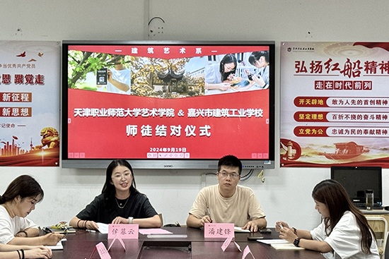 前期,學(xué)校建筑藝術(shù)系組織了“天津職業(yè)技術(shù)師范大學(xué)藝術(shù)學(xué)院與嘉興市建筑工業(yè)學(xué)校師徒結(jié)對(duì)儀式”,天職師大的實(shí)習(xí)生們與指導(dǎo)老師進(jìn)行了深入的了解。
