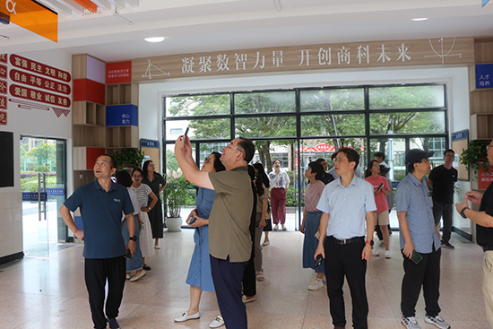 浙江開放大學臨平學院(臨平商貿職高)院長沈琪向與會的各位老師介紹了學校的發展歷程、辦學理念、校園文化、多元辦學職能和近幾年的發展規劃;帶領與會老師先后參觀了產教融合中心、荷韻文化展示館、新商科展示角等場室。學校的環境創設獲得了與會教師的高度稱贊。