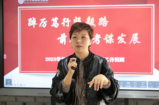 “退休不言別,閑暇時光聚,共敘家常事,心系往日情。”范曉春以這句溫馨的話語拉開了活動的序幕,熱烈歡迎老教師們重返這個充滿回憶的大家庭。在隨后的致辭中,她滿懷深情地向老教師們講述了嘉興建校在發展歷程中的點點滴滴,對老一輩教育工作者們所展現出的堅韌不拔與無私奉獻表達了最深的敬意。通過短視頻,范曉春向老教師們介紹了過去一年學校在黨建引領、治理體系創新、師資隊伍建設以及學生發展成長等方面取得的成績。范曉春表示,正是有了老一輩教師們為學校奠定的堅實基礎與無私奉獻的精神傳承,嘉興建校才得以在教育的道路上穩步前行,不斷攀登新的高峰。