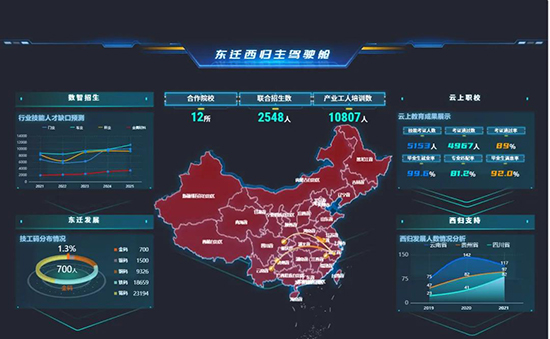 學(xué)院著力打造數(shù)字化資源“共享平臺(tái)”,創(chuàng)新開(kāi)發(fā)“東遷西歸·各族青年技能人才培養(yǎng)職教協(xié)作”數(shù)字應(yīng)用平臺(tái),歸集企業(yè)用工需求、技能人才信息、人才優(yōu)惠政策等7大類數(shù)據(jù),打造“東西平臺(tái)招生+協(xié)作互動(dòng)培養(yǎng)+就業(yè)發(fā)展西歸”的全周期人才服務(wù)鏈,讓各族青年留下來(lái)、融進(jìn)來(lái)、富起來(lái)。運(yùn)用“互聯(lián)網(wǎng)+同步課堂”,開(kāi)展遠(yuǎn)程技能交互式學(xué)習(xí)的各族學(xué)生達(dá)11000余人次,每年開(kāi)展實(shí)訓(xùn)車間直播教學(xué)300余次,有效實(shí)現(xiàn)了教學(xué)資源東西部共享。