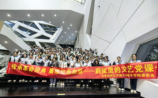 為進一步傳承紅色基因,弘揚革命精神,豐富校園文化生活,10月16日晚,浙江開放大學臨平學院(臨平商貿職高)組織了120余位學生代表走進臨平大劇院,開展“傳承革命經典 賡續紅色血脈——劇院里的文藝黨課”活動,共同觀看了話劇《向延安》。
