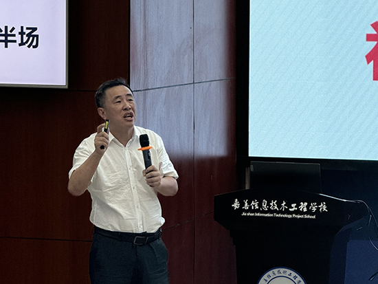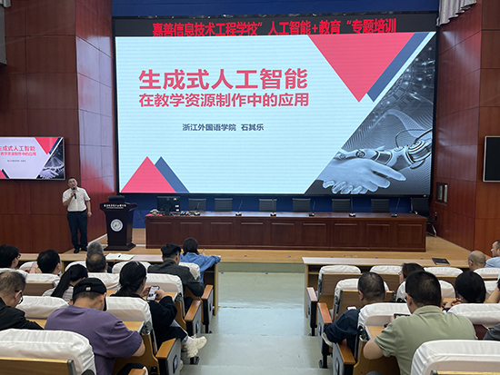 10月14日,浙江外國語學院石其樂教授為嘉善信息技術工程學校全體教師帶來了題為《生成式人工智能在教育教學中的應用》的講座。本次講座旨在普及生成式人工智能的基礎知識和前沿應用,讓老師們在數智化時代的教學潮流中穩舵前行。