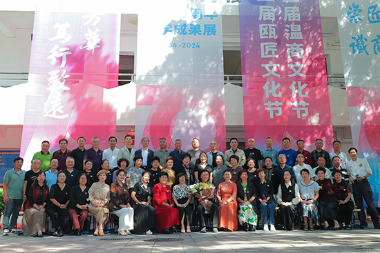 學(xué)校還在溫州市工人文化宮舉行了“七秩芳華·篤行致遠(yuǎn)”建校70周年辦學(xué)成果展演。以學(xué)校形象片《問道》為開場序幕,通過學(xué)校發(fā)展的過去、現(xiàn)在、未來三個(gè)篇章總結(jié)了學(xué)校70年辦學(xué)成果。現(xiàn)場,1959屆校友薛鐵章、1963屆校友馮大明等把精心創(chuàng)作的書畫作品捐贈(zèng)給母校,以此表達(dá)對(duì)母校的深厚感情。其中,1958屆校友、中國書法蘭亭獎(jiǎng)獲得者、西泠印社理事林劍丹捐贈(zèng)了四幅書法作品外,還為學(xué)校新校區(qū)題寫了校名,并將學(xué)校的辦學(xué)理念和育人目標(biāo)——“惟和惟創(chuàng)”“明大禮、崇匠藝、識(shí)商道”融入書法作品,寓意深遠(yuǎn)。此外,該校1993屆校友王航宇為學(xué)校建校70周年創(chuàng)作了歌曲《獻(xiàn)禮七秩芳華》,用旋律和歌詞傳遞了對(duì)母校的深深祝福;1987屆校友林臻宇指導(dǎo)的舞蹈《蓮鼓越歌行》,舞動(dòng)出中華傳統(tǒng)文化的深邃與典雅;1961屆校友、世界教科文組織專家成員、國家一級(jí)導(dǎo)演章世杰的弟子——國家一級(jí)演員薛清帶來了戲曲《天女散花》,傳遞著中國戲曲藝術(shù)的瑰麗想象。