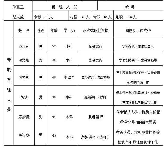 有專職管理人員6人,內(nèi)督導(dǎo)6人。有專兼職教師60余人。教師全部以高級(jí)職稱、高級(jí)技師為主,同時(shí)長(zhǎng)期聘請(qǐng)各大科研院所、企業(yè)、高校經(jīng)驗(yàn)豐富的企業(yè)管理人員、能工巧匠和教師來(lái)校參與社會(huì)培訓(xùn)服務(wù)。