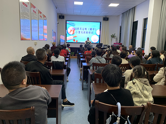 為提高2025級雙證制(高中)學(xué)員的小籠包制作水平,10月31日晚,蘭亭成校開展小籠包制作專項(xiàng)技能培訓(xùn),共有50余名學(xué)員參加此次培訓(xùn)。