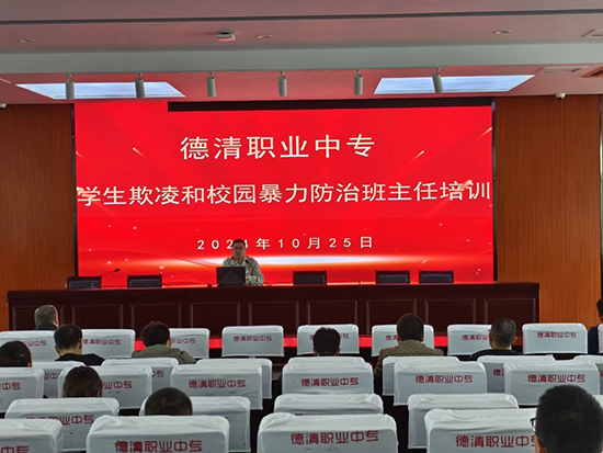 為進一步加強校園安全管理,預防和減少校園欺凌事件的發生,提高班主任的業務素質和德育工作能力,10月25日下午,德清職業中專開展了以“學生欺凌和校園暴力防治”為主題的班主任培訓會。全校72位班主任和各系政教主任參加培訓,培訓會由校黨委委員馬紀孝主持。