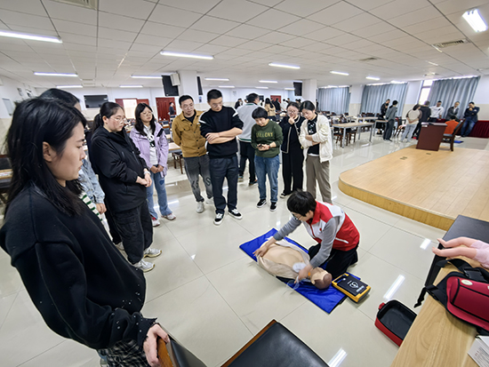 培訓采取線上理論和線下實操相結合的形式,利用“人人急救”APP平臺進行線上理論教學和考試,線下設點開展實操培訓與考核。區紅十字會授課老師們從基本急救理論知識、心肺復蘇技術(CPR)、體外自動除顫儀(AED)操作等方面,結合生活中發生的正反面案例,通過PPT與視頻,圖文并茂地介紹如何應對突發狀況并及時開展救護。