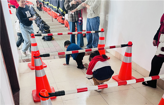 最后,大家到模擬火災(zāi)煙霧逃生體驗(yàn)屋進(jìn)行體驗(yàn)。小朋友和家長們在消防員的引導(dǎo)下,用濕毛巾捂住口鼻,彎腰有序地穿過體驗(yàn)屋,真實(shí)地感受火災(zāi)逃生場景。家長和孩子還一起用床單制作簡易逃生繩,模擬高樓逃生。這些活動(dòng)不僅讓孩子們學(xué)到知識,也提高了家長的消防意識。(周亞)