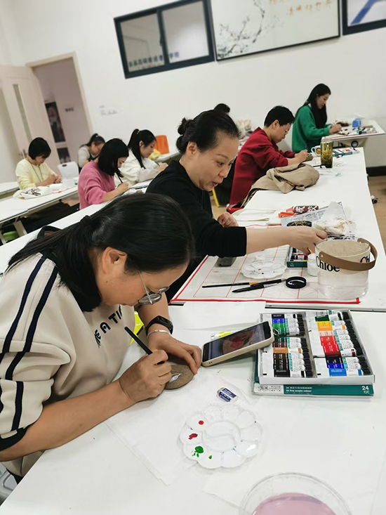 接著,學員們在施娟云老師的指導下,挑選出自己喜歡的石頭,用畫筆在石頭上創(chuàng)作出各式各樣的圖案。他們的作品涵蓋了山水、動物到抽象圖案,每個人都充分發(fā)揮了自己的創(chuàng)造力和想象力,創(chuàng)作出了獨一無二的石畫作品。在創(chuàng)作過程中,學員們互相交流心得,分享經驗,不僅學到了創(chuàng)意石畫的技巧,還收獲了友誼和快樂。