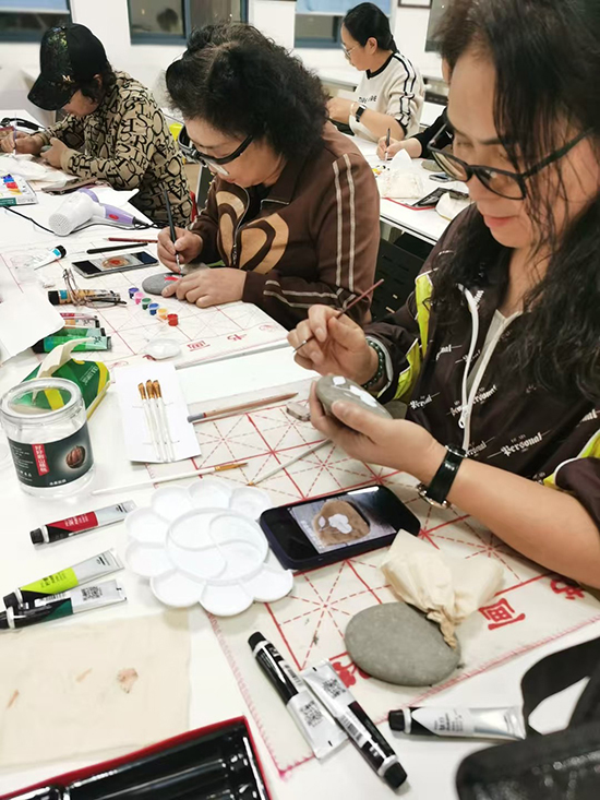 課堂上,施娟云老師首先對學員們的作品進行了認真細致的點評,隨后,她向學員們介紹了她詳細講解了如何選擇合適的石頭、如何調配顏料、如何運用筆觸等,讓學員們對創(chuàng)意石畫有了更全面的了解。