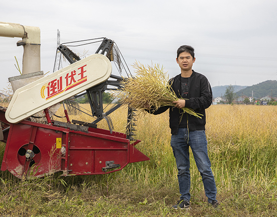 2010年他知曉政府大力扶持大學生返鄉創業后,他毅然決定離開大企業“舒適區”,回家務農創業。但傳統農業的局限使他渴望改變,于是在2017年進入成校高素質農民專班學習,他如魚得水,豐富的課程、高級農藝師講解令他對科學技術的掌握日益提高。學以致用,他購置了烘干機、無人插秧機、無人植保機等現代化農業機械,大大提升了農業生產的效率和收益,成了大家口中的“農機達人”,并獲得浙江省級的多項榮譽,央媒等媒體也進行廣泛報道。成功沒有讓他忘記和農民朋友一起振興鄉村的初心,他熱心幫助周邊農戶,解答種植難題,加入農民演說家隊伍,廣泛傳播農業知識,帶動更多的人共同富裕,將共富共美的精神落到實處。他貫徹總書記指示——“把‘藏糧于地、藏糧于技’真正落實到位。”