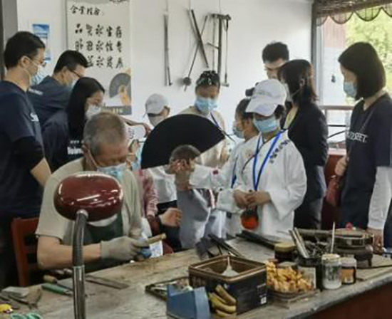 應市民需求,“行走的工匠”終身學習品牌項目又繼續開發了文化體驗、職業技能、考證等主題化、個性化培訓課程,如為社區老年文化社團量身打造了“化妝與清潔”系列培訓,指導老年人畫好演出妝,學會日常皮膚護理,進一步增強了老年人的文化自信;為熱愛漢服文化的年輕人拍攝了從眉妝到發飾等十節定制的“古韻美妝”網絡視頻課程,從文化導入、故事情境、妝容知識到實際操作、細節傳授,緊跟時尚潮流,切合了年輕人的審美,觀看量達萬余人次;為城郊結合部的外來務工人員、新杭州人開辦了“家常的杭幫菜”現場授課,同步直播并在抖音上宣傳推廣,實現精準教學。另外,結合殘疾人員、矯正人員需求,開設了相應的工匠技藝課和職業技能課,如天竺快制作工藝、布藝文創、美容美發等,促進就業創業;“行走的工匠”技藝課堂還走近特殊孩子,助力杭州市兒童福利院“走遍杭州”游學活動,為小天使們鏈接了一場融學習、參觀、體驗于一體的研學游活動,從王星記扇到浙派古琴,在工匠的耐心指導和志愿者一對一的幫助下,孩子們DIY了一把屬于自己的折扇,嘗試了古琴基礎指法練習,在沉浸式學習中地感受非遺文化的魅力,讓非遺之美在孩子心中扎根發芽。