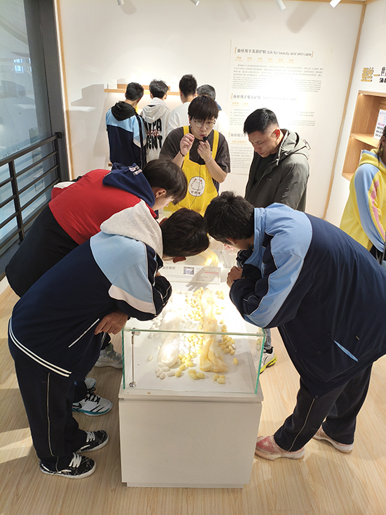 同學們興奮地圍在蠶匾周圍,一個個化身好奇寶寶,小心翼翼將桑葉喂給蠶寶寶吃。通過對蠶寶寶的觀察和輔導員老師的講解,同學們了解了蠶寶寶的生長周期和食性,體會到生命的神奇成長過程,也懂得了養蠶的艱辛與不易,學會了要尊重勞動、珍惜成果。