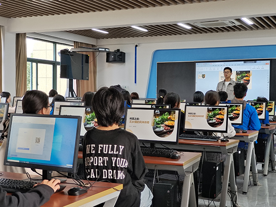 “寧波市職教中心學(xué)校的電商直播課很好,學(xué)了很多實(shí)用的技能,等我回到澳門也可以嘗試一下。”澳門創(chuàng)新中學(xué)的同學(xué)們深入專業(yè)課堂,與寧波市職教中心學(xué)校的同學(xué)們一起上了《AI短視頻制作》和《電商直播》兩門專業(yè)課。在《AI短視頻制作》課程中,同學(xué)們學(xué)習(xí)了用AI生成圖片,再生產(chǎn)短視頻進(jìn)行剪輯。每位同學(xué)都能按照指導(dǎo)做出成品短視頻。數(shù)媒專業(yè)老師曾珍表示:“兩地學(xué)生同上一門專業(yè)課很有意義,作為老師,我感受到兩地學(xué)生擁有一樣的學(xué)習(xí)熱情和能力,作品都非常棒,但也從作品看到了兩地學(xué)生的思維差異。”電商專業(yè)教師郝成龍讓同學(xué)們對(duì)五鄉(xiāng)榨菜進(jìn)行直播腳本撰寫,甬澳兩校學(xué)生相互協(xié)作,彌補(bǔ)了文化、思維等方面的差異,最終共同完成出色的作品。
