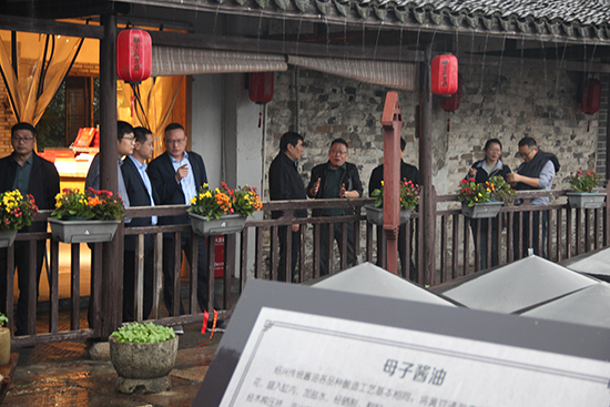 高會長一行先考察了齊賢成人文化技術學校(以下簡稱齊賢成校)的校園文化及教學場地和設施,聽取了齊賢成校的辦學情況及通過教學培訓助力市民創業增收的做法與成效的匯報;詳細詢問了柯橋區全域推進“共富夜校”建設的經驗做法。然后來到浙江省市民終身學習體驗基地、紹興市柯橋區安昌成人文化技術學校(以下簡稱安昌成校)校企合作單位——紹興仁昌醬園,調研由浙江開放大學柯橋學院與安昌成校共同開展的省“匠心筑夢、助力共富”專題資源建設情況,聽取了仁昌醬園高級工程師、浙江省非物質文化遺產“紹興醬油傳統釀造技藝”代表性傳承人滕軍康關于仁昌醬園的歷史演變,母子醬油的制作技藝以及校企合作培訓工作相關情況介紹。