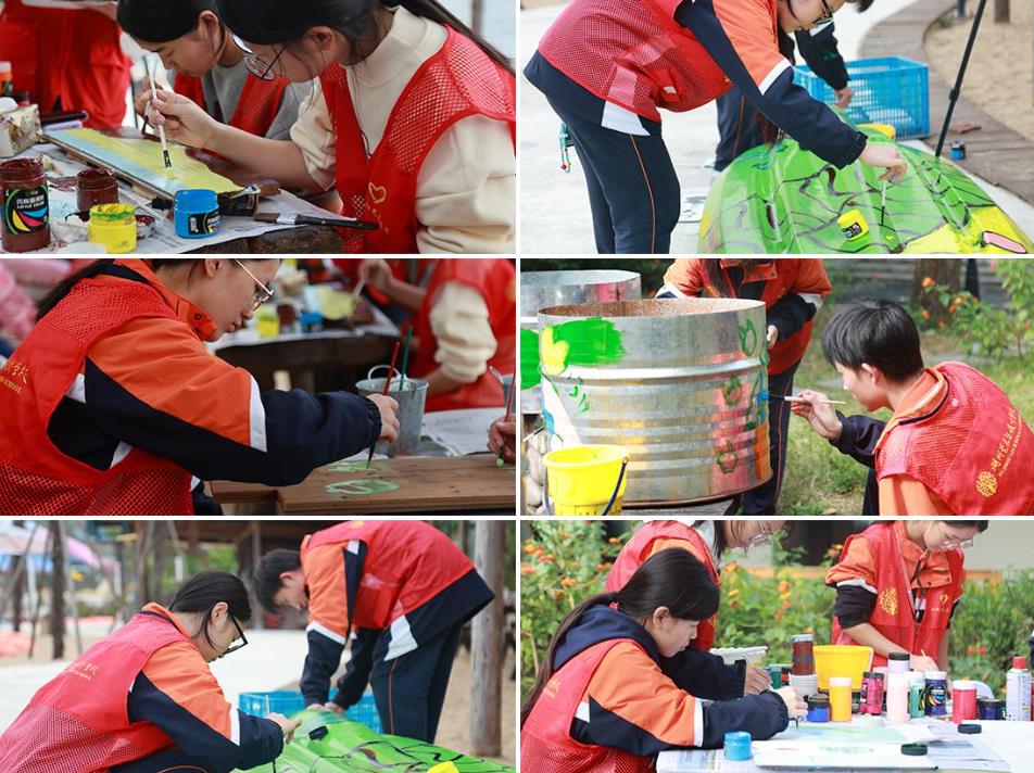 從油桶到木板,從設(shè)計到上色,小小的畫筆讓藝術(shù)與自然合而為一,交相輝映。同學(xué)們繪制的木板指示牌,給棲sail沙灘注入了童趣活力;原本平平無奇的皮劃艇,經(jīng)過同學(xué)們的裝飾改造,也變得煥然一新;還有原本不起眼的小擺件,通過彩繪也變成了趣味盎然的藝術(shù)品。