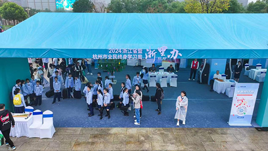 “學習改變生活”為主題的2024年浙江省暨杭州市全民終身學習活動周在浙江展覽館南廣場年舉行?;顒又芷陂g,杭州市各區縣(市)圍繞“學習改變生活”的主題,精心布置了文化傳承、學習場景、精神面貌、數字賦能、社會治理等5個單元創意展區,將宋韻文化、都市文化、數字技術等元素深度融合,打造沉浸式的未來美好生活空間。