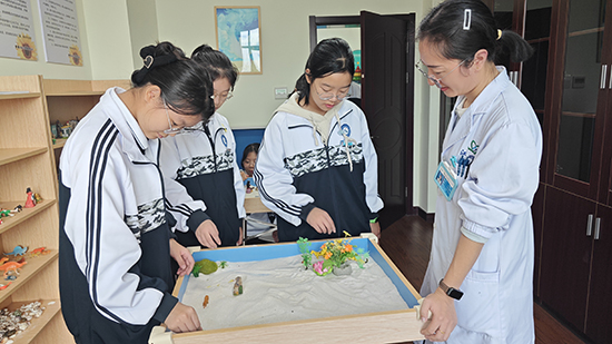 在中心負責人武春苗醫師的精心組織下,同學們有序參觀了心理咨詢室、放松減壓室、沙盤輔導室及團體輔導室等多個功能區域。通過武醫師的互動問答,同學們不僅了解了青春期常見的心理問題及其表現形式,還初步掌握了心理問題的基本治療方法。