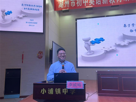 浙江省初中英語(yǔ)教研員李威峰帶來(lái)了題為《基于學(xué)科項(xiàng)目化理念的初中英語(yǔ)新教材使用》的講座。在講座中,李老師結(jié)合新教材的Unit 5單元,整體闡述了自己的項(xiàng)目化教學(xué)思路,同時(shí)圍繞教材研究、真實(shí)課堂、師生為本三點(diǎn)講述了如何用好新教材、如何上好一堂課。杭州市英語(yǔ)教研員曹群珍開展《單元整體視域下的七上教學(xué)建議》的講座。曹老師指出教師要理解學(xué)科邏輯、教材編寫邏輯、單元邏輯,鏈接生活邏輯,從而更好地理解教學(xué)邏輯和學(xué)習(xí)邏輯。紹興市英語(yǔ)教研員周智忠分享《基于理解看新教材的五個(gè)“有利于”》。他從有利于探究主題及主題意義、有利于實(shí)施單元整體教學(xué)、有利于推進(jìn)知識(shí)向能力轉(zhuǎn)化、有利于實(shí)現(xiàn)教學(xué)評(píng)一致性、有利于開展跨學(xué)科實(shí)踐活動(dòng)五個(gè)方面進(jìn)行詳細(xì)闡述。三位專家從不同的角度解讀新教材,并結(jié)合案例給教師們分析了教學(xué)的方向,讓老師們進(jìn)一步明確了新教材的理念、邏輯和實(shí)施策略。
