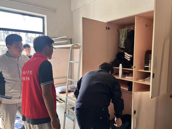 德育處、安管處聯合諸暨市城東派出所民警開展一學期一次的全校寢室安全大檢查,民警在場、教師在場,學生親自開包驗箱的方式進行檢查。