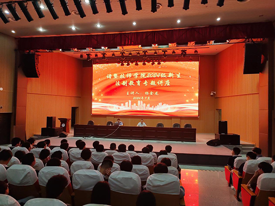 學校邀請了司法專家舉辦了多場講座。諸暨技師學院法治副校長、城東派出所民警楊金龍警官為2024級新生送上了以“做懂法、守法的新時代青年”為主題的“法治禮包”。諸暨市司法局暨南司法所所長孟柳霞女士為全校學生開展一場精彩生動的法治教育講座。用通俗易懂、生動有趣的宣講方式和貼近生活的案例、深刻的教訓幫助青少年樹立自我保護意識,守護青少年健康成長。