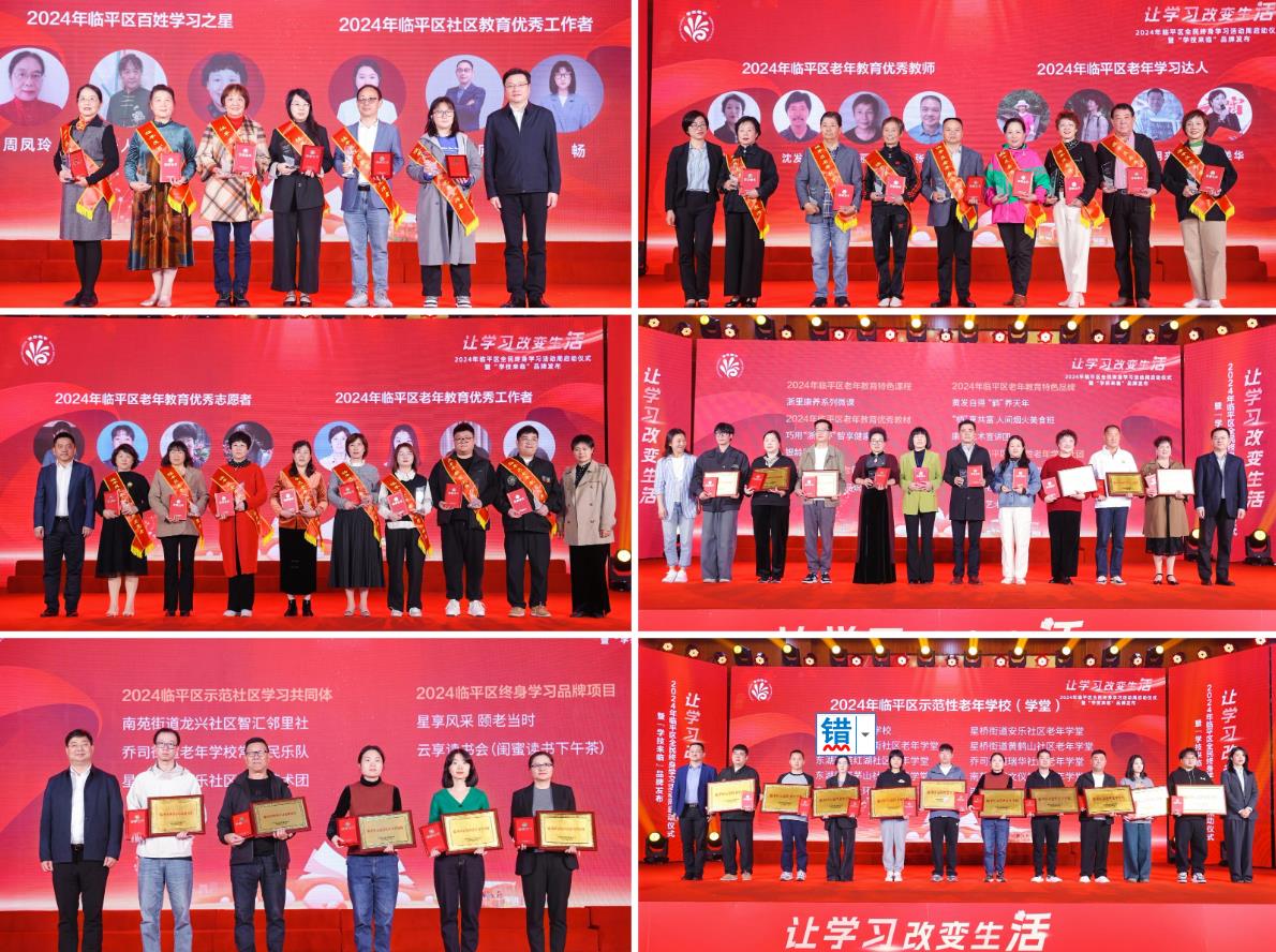 活動還為2024年臨平區(qū)老年教育優(yōu)秀教師、工作者、志愿者、特色課程、優(yōu)秀教材、優(yōu)秀微課、特色品牌,示范性老年學習社團、示范性老年學校(學堂)、百姓學習之星、社區(qū)教育優(yōu)秀工作者、老年學習達人、示范社區(qū)學習共同體、終身學習品牌項目等獲獎代表頒獎。