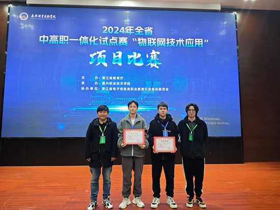 11月21日至22日,由浙江省教育廳牽頭主辦的2024年浙江省中高職一體化試點賽“物聯網技術應用”項目(首屆)在嘉興職業技術學院舉行。浙江信息工程學校信息部物聯網23班莫鵬飛和浙江郵電職業技術學院陳秉康聯合組隊(指導教師 中職:胡煜 高職:陳浩杰),取得全省第四名的佳績,榮獲團體二等獎。