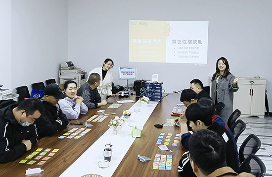緊接著,特邀嘉賓秦貴瓊老師為大家?guī)?lái)了性格色彩卡牌測(cè)試環(huán)節(jié)。這一環(huán)節(jié)旨在通過(guò)性格色彩學(xué),幫助大家更好地了解自己的性格特質(zhì),從而在團(tuán)隊(duì)協(xié)作中發(fā)揮出更大的優(yōu)勢(shì)。秦老師耐心地引導(dǎo)大家進(jìn)行卡牌選擇,并逐一解讀卡牌背后的深層含義。員工們?cè)谳p松愉快的氛圍中,不僅加深了對(duì)自我的認(rèn)知,還學(xué)會(huì)了如何在日常工作中與不同性格的同事有效溝通,共同推動(dòng)團(tuán)隊(duì)的和諧發(fā)展。