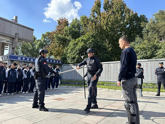 活動現(xiàn)場,警察們詳細講解了反恐防暴的基本知識和應對技巧,涵蓋識別可疑人員、掌握緊急疏散路線及自我防護等內(nèi)容,并現(xiàn)場演示防暴器械的使用方法,進行制服暴徒的動作示范。