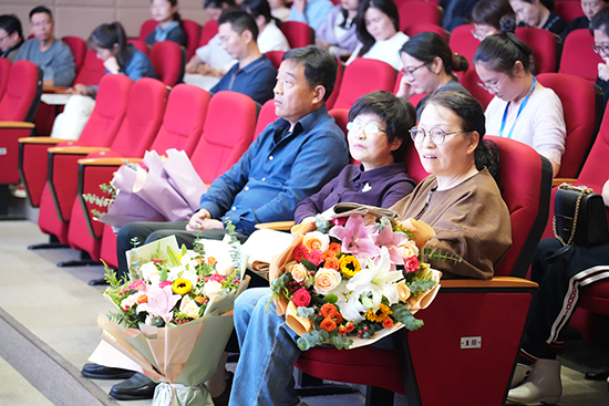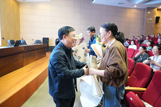 儀式開(kāi)場(chǎng),大屏幕播放了致敬退休老師的贈(zèng)語(yǔ),凝練地總結(jié)了他們對(duì)教育的熱忱和在崗位上的貢獻(xiàn)。老師們眼中滿是感慨與不舍。在一片溫暖而深情的氛圍中,陳榮校長(zhǎng)和林芳副校長(zhǎng)向到場(chǎng)的周辰善、錢(qián)瑛、張雋瑾三位老師送上了鮮花以及由前任校長(zhǎng)陳劍峰親筆書(shū)寫(xiě)的學(xué)校的贈(zèng)語(yǔ)對(duì)聯(lián),以此向他們多年來(lái)的辛勤工作表示肯定和感謝。