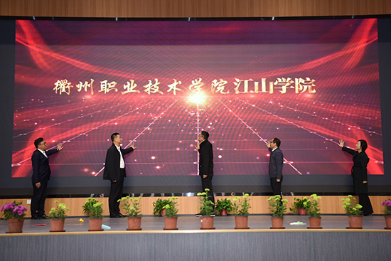 衢州職業(yè)技術(shù)學(xué)院黨委副書(shū)記、校長(zhǎng)呂延文,衢州市教育局黨委委員、副局長(zhǎng)徐豐民,江山市人民政府副市長(zhǎng)王展,江山市教育局黨委書(shū)記、局長(zhǎng)鄭李慧,衢州第二中專(zhuān)黨委書(shū)記徐凌志共同為衢州職業(yè)技術(shù)學(xué)院江山學(xué)院進(jìn)行了揭牌儀式。這一儀式的完成,標(biāo)志著江山學(xué)院正式成立,將開(kāi)啟職業(yè)教育的新篇章。