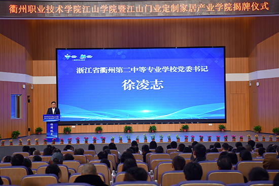 12月3日,衢州職業(yè)技術(shù)學(xué)院江山學(xué)院暨江山門(mén)業(yè)定制家居產(chǎn)業(yè)學(xué)院揭牌儀式在衢州第二中專(zhuān)隆重舉行,標(biāo)志著校企合作、產(chǎn)教融合邁出了堅(jiān)實(shí)的一步。