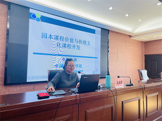 培訓邀請了傳統文化教育領域的專家學者及幼教名師,圍繞“傳統文化在幼兒園課程中的創新應用”“傳統創造發明的創新體驗”“長興非遺項目的傳承與教育實踐”核心主題展開深入講解與分享。湖州師范學院趙海燕教授剖析了園本課程價值與傳統文化課程開發的內涵與特點,并分享了《西湖的妙 杭州的美》等傳統文化案例。杭州市西湖區自在城幼兒園張焱園長通過《童玩創意 指尖造趣》案例,展示了孩子們對杭州塔、國畫《千里江山圖》的創意實踐,探討了創想創意美術活動的實施路徑。長興縣文化館黃益平副館長帶領大家走進長興非遺,通過視頻圖片展示了國家級、省市級非遺項目,讓學員們領略了長興非遺的豐富多彩。