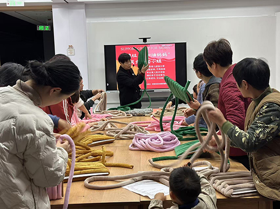 針對(duì)親子閱讀空間設(shè)置,寶媽們提出了具體的建議。她們認(rèn)為,社區(qū)應(yīng)該設(shè)立一個(gè)溫馨、舒適的親子閱讀區(qū),提供豐富的兒童讀物和親子共讀活動(dòng),營造良好的閱讀氛圍,激發(fā)孩子們的閱讀興趣。社區(qū)還暖心安排了手工編織墊活動(dòng)。寶媽們?cè)趯I(yè)老師的指導(dǎo)下,親手編織出一個(gè)個(gè)溫暖、舒適的墊子,為冬天送上了一份特別的溫暖。