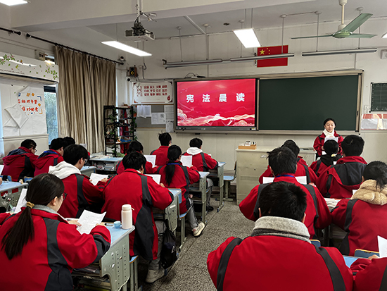 憲法的根基在于人民發自內心的擁護,憲法的偉力在于人民出自真誠的信仰。憲法晨讀活動激發了同學們學習憲法法律的主動性和積極性,增強了法治意識,為創建平安校園和法治校園筑牢根基。(張書怡)
