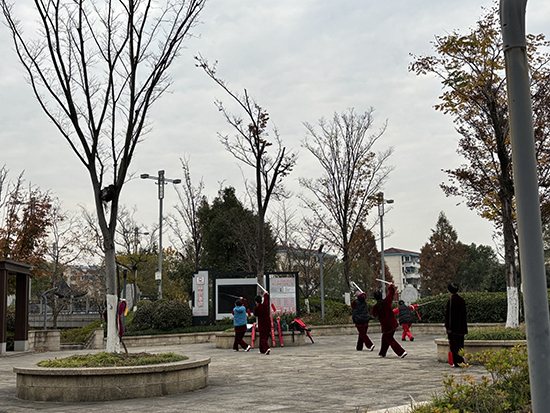 隨后,盧老師開始教授新課——太極劍。在音樂的伴奏下,學員們緊跟盧老師的步伐,一招一式,有板有眼。太極劍動作柔和、緩慢,講究內(nèi)外兼修,學員們在練習過程中,不僅鍛煉了身體,還陶冶了情操。