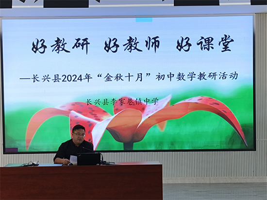 學(xué)員參與了由長(zhǎng)興縣以“新教材·好教研·高品質(zhì)”為主題的初中數(shù)學(xué)“金秋十月”名師送教活動(dòng)。活動(dòng)中先觀摩了縣名師胡偉偉執(zhí)教的《探索三角形能被分割成兩個(gè)等腰三角形的條件》、縣名師章杰、縣骨干教師唐君、縣骨干教師陳丹執(zhí)教的《有理數(shù)的乘方》四節(jié)課;隨后聆聽了王慧泉、應(yīng)武平等多位名優(yōu)教師的觀點(diǎn)分享與微報(bào)告;最后縣初中數(shù)學(xué)教研員施海堯老師結(jié)合創(chuàng)思課堂的六個(gè)環(huán)節(jié),創(chuàng)境啟思—自探靜思—合作展思—質(zhì)疑辯思—訓(xùn)練促思—拓展創(chuàng)思進(jìn)行了總結(jié)。他特別指出新課標(biāo)、新教材、新課堂為教師提供了更寬廣的舞臺(tái),也對(duì)每位教師提出了更高的要求,在今后的教學(xué)中要更加注重培養(yǎng)學(xué)生的高階思維和創(chuàng)新能力。在名師們的引領(lǐng)下,通過參與式的觀摩活動(dòng),讓學(xué)員們針對(duì)新教材如何在教學(xué)中設(shè)計(jì)結(jié)構(gòu)化的材料來架構(gòu)整節(jié)課,并用學(xué)生生成的材料來推進(jìn)課堂,從而實(shí)現(xiàn)知識(shí)本質(zhì)的理解和思維的發(fā)展有了深入的理解。