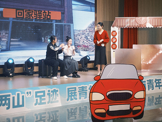 為使宣講內(nèi)容更具針對(duì)性和吸引力,此次挑戰(zhàn)賽設(shè)置有云廊集中研學(xué)、蹲點(diǎn)調(diào)研及集體創(chuàng)作磨課等環(huán)節(jié),舟職青年宣講員章馨尹所在的團(tuán)隊(duì)先后前往長白后岸余家古村、三毛文化村等地實(shí)地調(diào)研,在為期半月的小組創(chuàng)作中,將后岸余家古村在云廊建設(shè)中由閉塞古村到年輕人引流地的蝶變故事演繹為小品,并最終搬上舞臺(tái)。“這是一次非常特別的宣講,不只有黨的科學(xué)理論,還有‘老伯修兒子的回家路’‘外地小伙堅(jiān)守書店’等真實(shí)鮮活的故事。我們用‘小品’在講述的時(shí)候也覺得更加‘走心’。”章馨尹賽后分享。