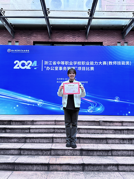 近日,浙江省中等職業(yè)學校職業(yè)能力大賽(教師技能類)“辦公室事務管理”項目比賽在浙江經(jīng)貿職業(yè)技術學院(杭州)圓滿落下帷幕。臨平商貿職高商務助理專業(yè)閆運瑾老師與來自省內10個市17所職校的參賽教師們同臺角逐,最終獲得二等獎!