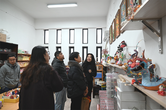 理事會一行人走進臨平商貿職高荷韻文化作品展示館,參觀了鐵藝畫工作室、黏土工作室,從體驗非遺漆扇、到一個個栩栩如生的黏土作品,理事會成員們贊不絕口,并對學校教師立足職教沃土,深耕專業領域表示肯定。