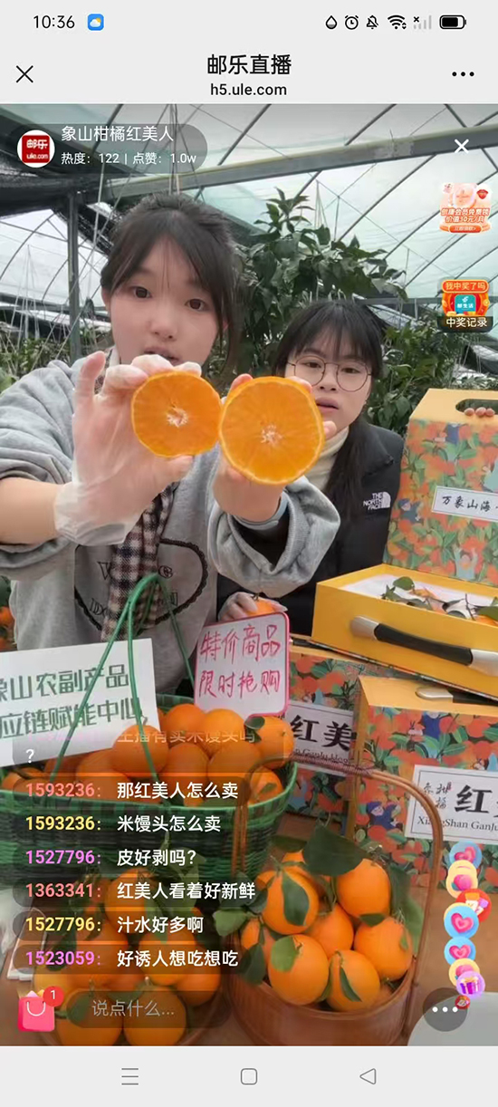 “各位美人粉,象山紅美人已經(jīng)暢銷二十幾年了,今天直播間福利多多,除了優(yōu)惠券可疊加多次使用外,最大的福利是主播手中的‘全球’限量款紅美人包裝禮盒,數(shù)量有限,先到先得!”冬至臨近,難掩寒意襲人,但是象山縣墻頭鎮(zhèn)西滬村先浩家庭農(nóng)場里,卻是一片火熱。12月19日上午9時,中國郵政集團(tuán)有限公司浙江省象山分公司聯(lián)合寧波建設(shè)工程學(xué)校開展了一場2024“源源鄉(xiāng)音”象山紅美人的溯源直播活動,吸引了眾多粉絲前來。