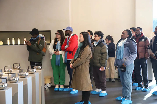 下午,留學生們還興致勃勃參觀了飛劍工貿有限公司的5G數字化制造車間,零距離體驗飛劍杯壺智能制造的全過程。在永康東方美學空間,他們欣賞著琳瑯滿目的杯壺產品,沉浸式感受不同杯壺應用所帶來的美好生活。值得一提的是,技師學院數智經貿學院學生全程參與翻譯。“So amazing!”留學生們對精妙絕倫的杯壺工藝贊嘆不已。