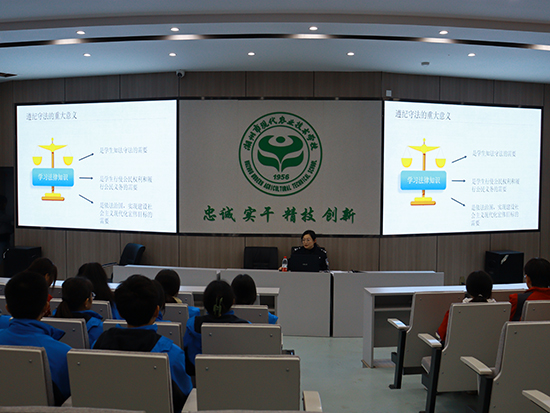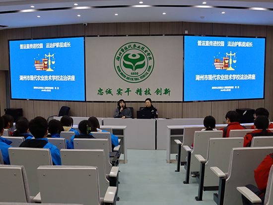為進一步增強學(xué)生的法治觀念,提高學(xué)生的法律意識,有效預(yù)防青少年犯罪,12月5日,湖州市公安局出入境管理局政委胡侃到湖州市現(xiàn)代農(nóng)業(yè)技術(shù)學(xué)校開展了以“普法宣傳進校園,法治護航促成長”為主題的講座。