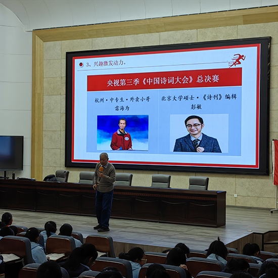 講座中,陳善釗分享了小米的創(chuàng)始人、董事長(zhǎng)雷軍不懈努力改變?nèi)松墓适拢⑴c學(xué)生互動(dòng),邀請(qǐng)學(xué)生分享自己的學(xué)習(xí)目標(biāo)和未來(lái)夢(mèng)想。學(xué)生們積極響應(yīng),紛紛闡述自己的理想,表達(dá)了對(duì)未來(lái)的美好憧憬和堅(jiān)定信念。陳善釗一一予以鼓勵(lì)和點(diǎn)撥,讓學(xué)生充分感受到被重視和受激勵(lì)。陳善釗用妙趣橫生的語(yǔ)言和生動(dòng)鮮活的案例,通俗易懂地闡述了學(xué)習(xí)的必要性及珍惜當(dāng)前大好時(shí)機(jī)的緊迫性,講座輕松愉快,不失思考與啟迪。他總結(jié)出的“志向產(chǎn)生動(dòng)力,責(zé)任增強(qiáng)動(dòng)力,興趣激發(fā)動(dòng)力,信心提升動(dòng)力”深受學(xué)生啟發(fā),勉勵(lì)學(xué)生們要勇于面對(duì)挑戰(zhàn),不畏艱險(xiǎn),把每一次失敗視作成長(zhǎng)的墊腳石,用辛勤的付出去鋪就成功的道路。他分享了“2018年央視第三季中國(guó)詩(shī)詞大會(huì)總冠軍雷海為”與“2018年獲《中國(guó)詩(shī)詞大會(huì)第三季》亞軍和2020年《中國(guó)詩(shī)詞大會(huì)第五季》總冠軍彭敏”的故事,講述興趣對(duì)一個(gè)人發(fā)展的重要性。最后寄語(yǔ)全體學(xué)生:“今天,努力學(xué)習(xí)、刻苦修煉有動(dòng)力;明天,事業(yè)成功、國(guó)家富強(qiáng)有我們。希望大家珍惜時(shí)光,努力學(xué)習(xí),用實(shí)際行動(dòng)書寫屬于自己的精彩人生篇章。”在師生們熱烈的掌聲中結(jié)束了報(bào)告。