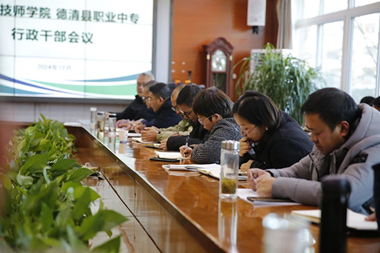 12月20日下午,湖州市技師學院、德清縣職業中專行政干部會議在職業中專召開??h教育局黨委委員、縣職業教育黨委書記、湖州市技師學院黨總支書記潘強,縣教育局黨委委員、縣職業教育黨委副書記、湖州市技師學院院長、德清縣職業中專校長董國偉出席會議,兩校處室和系副職及以上行政人員參加。