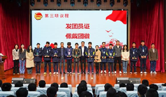 最后,校黨委書記周國林寄語全體團員。周書記代表學校黨委向光榮加入團組織的同學們致以誠摯的祝賀和美好的祝愿。他希望全體新團員們要堅持勤奮學習,要弘揚愛國主義精神,要培養高尚品德,樹立遠大理想;時刻牢記自己“共青團員”的身份,切實增強作為一名團員的榮譽感、歸屬感和責任感,自覺為團旗增輝添彩;努力踐行“請黨放心,強國有我”的鏗鏘誓言,腳踏實地譜寫屬于自己的出彩人生!