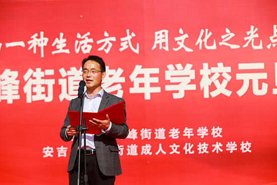在文藝匯演過程中,老年學校李校長發表了熱情洋溢的致辭。他首先對一直以來關心和支持老年學校和靈峰成校發展的各級領導、嘉賓以及辛勤耕耘在教育一線的老師們表示衷心的感謝,并回顧了過去一年靈峰成校在老年學位增設、社區培訓、產教融合以及學歷提升等方面取得的顯著成果。同時,他還展望了未來一年靈峰成校的發展規劃,表示將繼續秉承“提升公民素質、服務地方經濟、促進社會和諧”的辦學宗旨,在學歷提升、產教融合、銀齡經濟等方面持續發力,爭取為經濟社會發展多作貢獻;老年教育方面,進一步豐富課程內容,提升教學質量,以滿足更多老年朋友的學習需求。