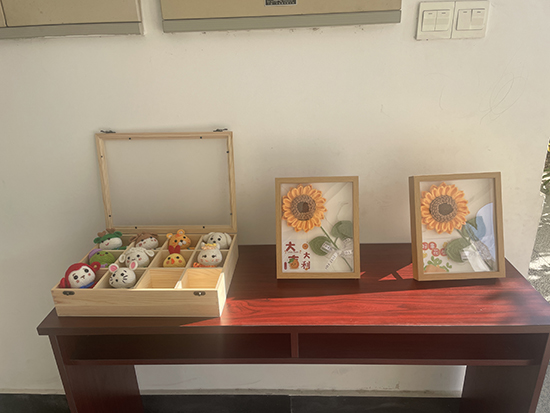 展覽現(xiàn)場,手工編織的向日葵作品格外引人注目。這些向日葵以鮮艷的黃色為主色調(diào),花瓣層層疊疊,栩栩如生。學(xué)員們巧妙地運(yùn)用編織技巧,將普通的線材變成了生動(dòng)形象的向日葵。造型可愛的十二生肖動(dòng)物玩偶則是此次展覽中的焦點(diǎn)。這些玩偶以中國傳統(tǒng)文化中的十二生肖為原型,通過學(xué)員們的精心編織,變得栩栩如生、形態(tài)各異。從機(jī)智靈活的老鼠到威武兇猛的老虎,從溫順可愛的兔子到憨態(tài)可掬的豬,每一個(gè)生肖玩偶都栩栩如生,仿佛下一秒就要躍入觀眾懷中。