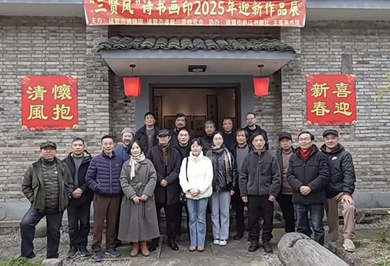 2024年12月28日上午,諸暨市楓橋鎮(zhèn)王冕藝術(shù)館內(nèi)有點(diǎn)熱鬧,參觀者對著張掛的書畫作品低聲評頭品足,這里正在舉行“‘三賢風(fēng)’詩書畫印2025年迎新作品展”。